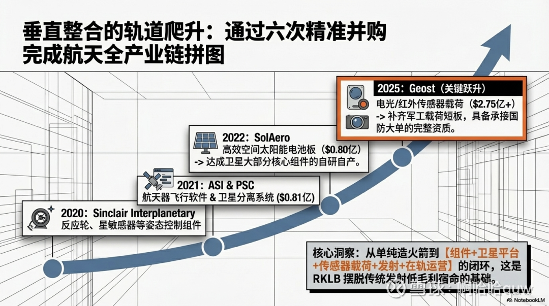 2025年8月收购 Geost 是战略上的关键一步。此前公司覆盖"平台"但不覆盖"载荷"——卫星的壳子自己造,但上面装什么传感器不是自己的事。Geost 带来了电光/红外(EO/IR)传感器系统,这是导弹预警和跟踪的核心技术。这意味着 Rocket Lab 第一次具备了从组件到卫星到载荷到发射到在轨运营的完整国防太空解决方案能力,可以作为主承包商竞标 Golden Dome 等大型国防项目。