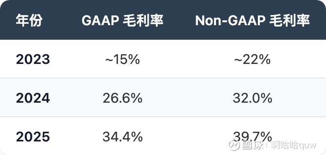 季度毛利率也在持续爬升——2025年Q3的 GAAP 毛利率达到37.0%,Q4 达到37.9%;Non-GAAP 分别为41.9%和44.3%。