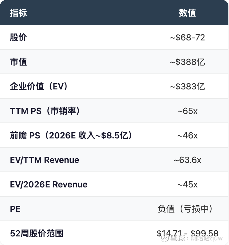 企业价值计算:市值$388亿 + 可转债$3亿 - 现金$8.29亿 ≈ $383亿。
