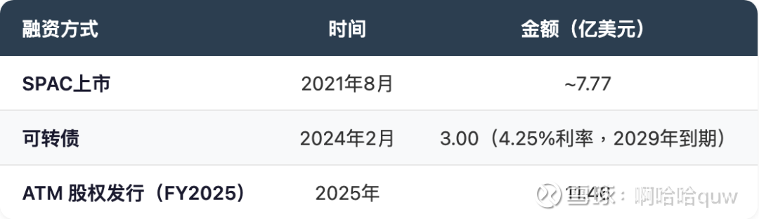 约两年内流通股数增长约13%,主要通过 ATM 发行。此外$3亿可转债的转换价为$8.04,按当前股价~$70已深度价内,未来转换后将进一步摊薄。