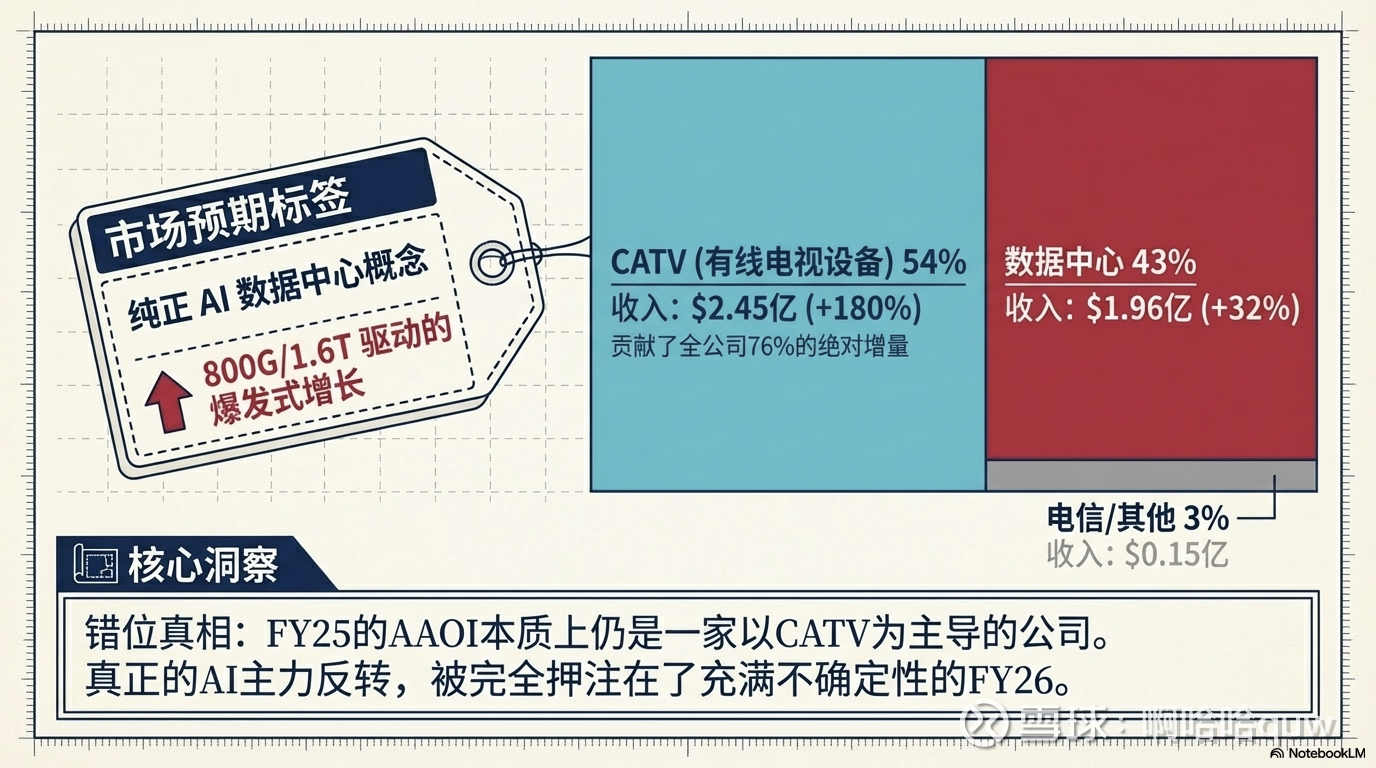 AAOI 的收入来自三个终端市场,结构在过去两年发生了显著变化: