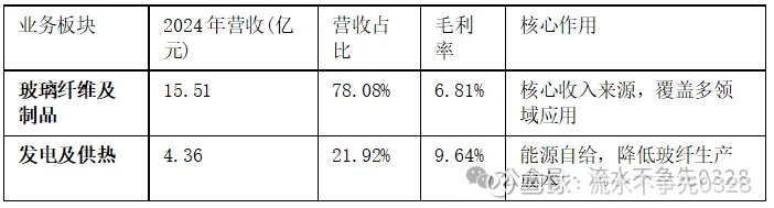 热电业务(成本支撑):由全资子公司沂水热电负责运营,2024年实现营收4.36亿元,占比21.92%。该业务在沂水县范围内提供电力、蒸汽和供暖服务,更关键的是为公司玻纤生产提供稳定的低成本电力和蒸汽供应,有效平抑了能源价格波动对生产成本的影响,构筑了坚实的成本护城河。