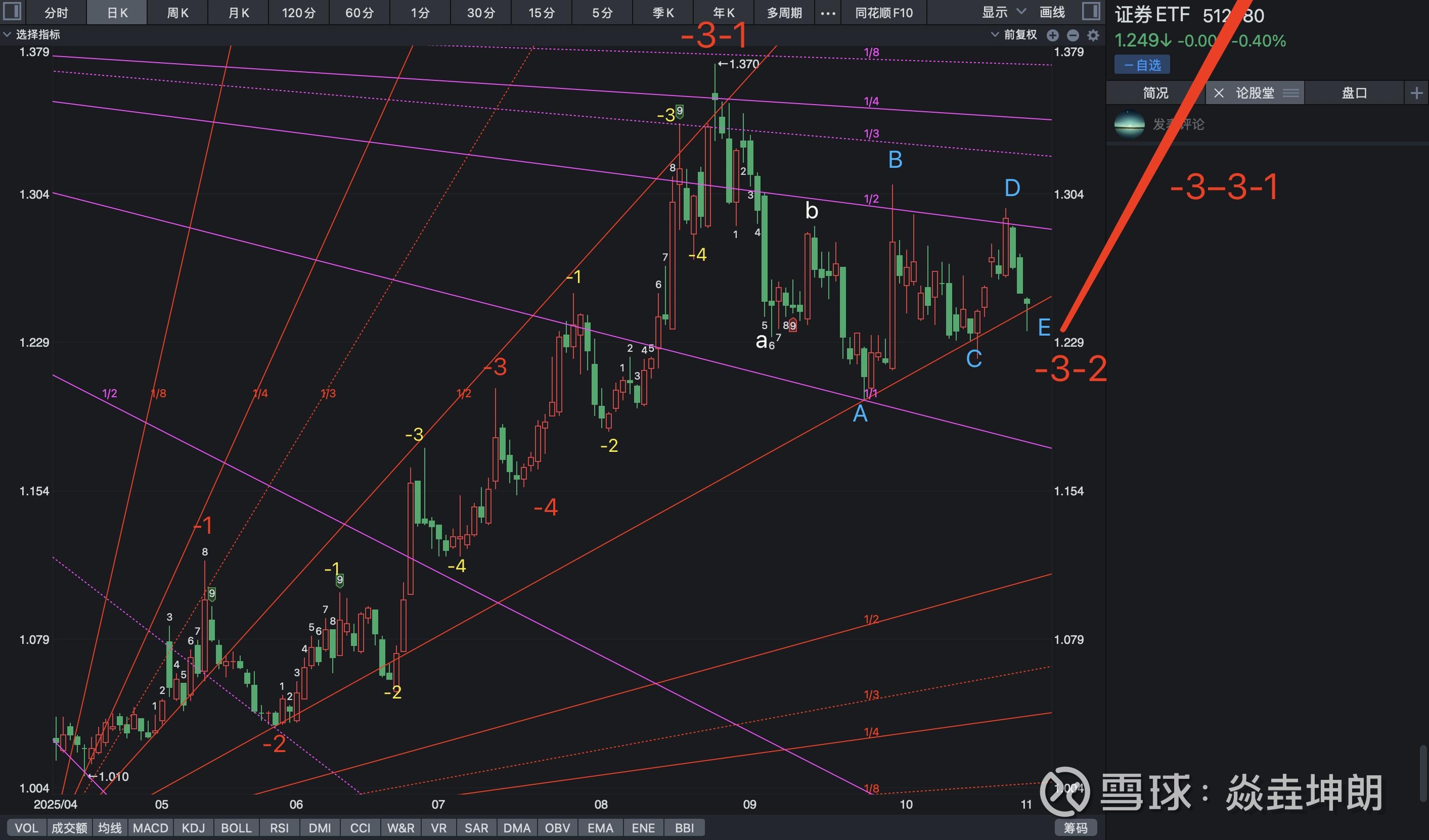 虽然给出了以上两种方案,但我更偏向或者说是更希望走第一种方案,因为一旦选择了走第二种,那么后面大概率还会演变出第三甚至第四种,时间拖得越久,-3-2浪的调整只会走得越复杂,主力拉-3-3的难度或者说成本只会越大!#券商# $证券(BK0057)$ $证券ETF龙头(SZ159993)$ $国泰海通(SH601211)$