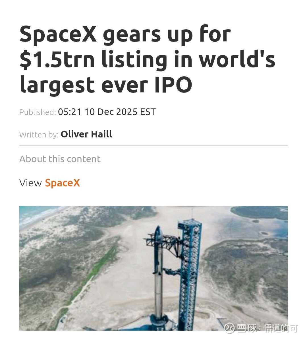 SpaceX最新传闻估值1.5万亿美元,史上最大ipo,并将太空数据中心建设作为核心业务之一推广。