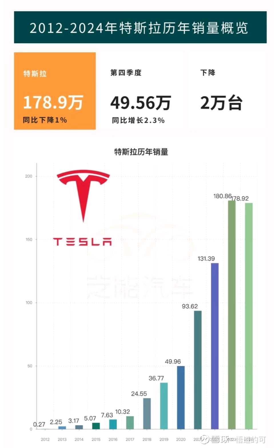 下一步星链终端整合进入特斯拉,看下特斯拉的销售量和保有量。