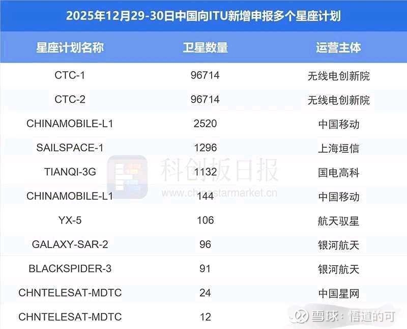 1月10日,据国际电信联盟(ITU)官网显示,我国2025年12月向ITU申报了超20万颗卫星的频轨资源。由于ITU实行“先到先得”原则,太空资源竞争趋于白热化,国内商业航天进入规模化部署阶段。中国相继提出GW星座和千帆星座等大型星座项目,瞄准万星规模星座规划。