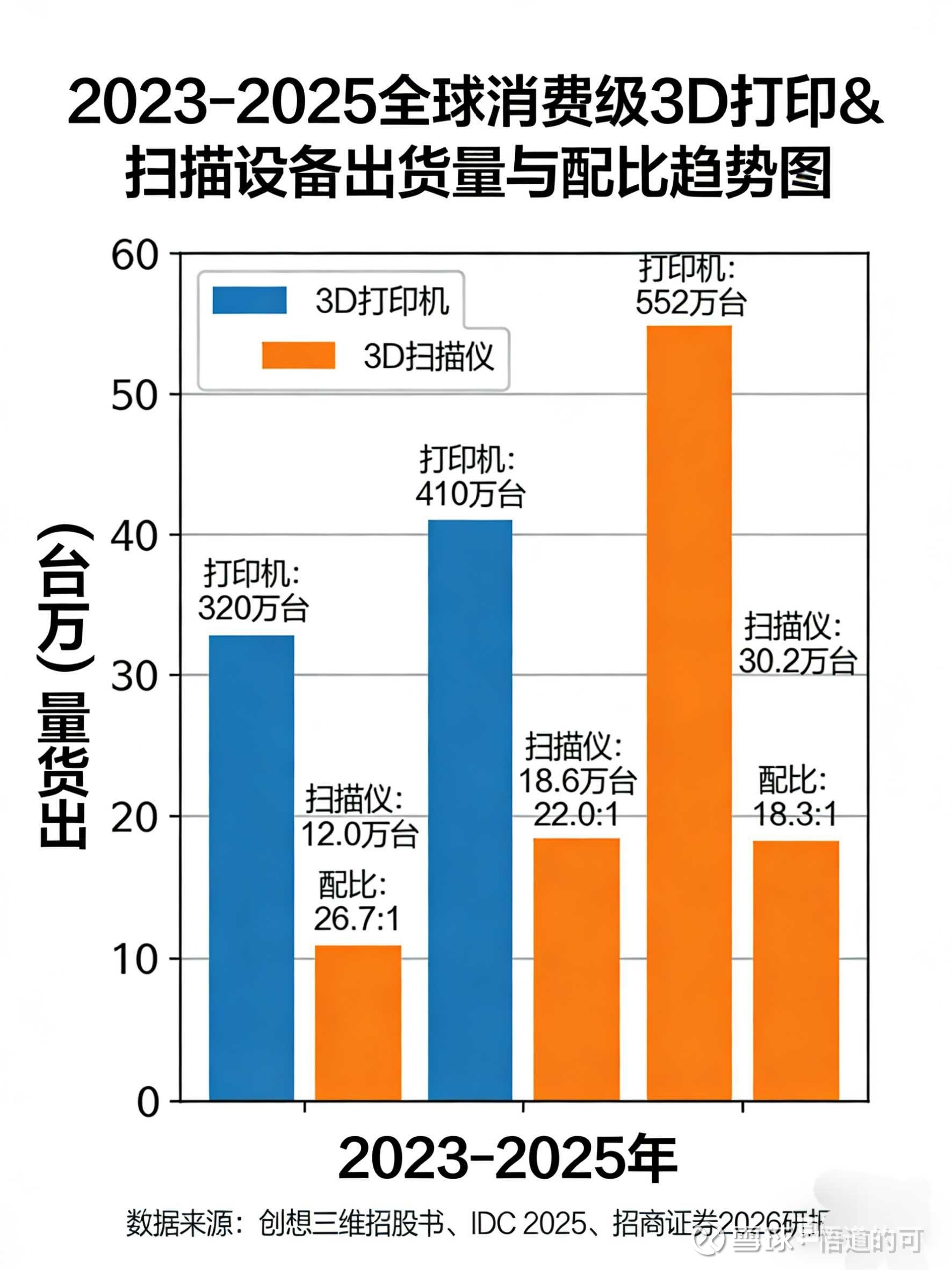 “拓竹打印机去年200万台出货量,最近新建300万台产能,今年对于拓竹打印机出货量预期比较乐观。扫描仪和打印机出货量的配比,大家可以看行业数据,创想三维24年到25年 Q1配比量从1:10提高到1:5,扫描仪不完全用于打印机,用于逆向工程、桌面cnc、激光雕刻等需求也在快速提升,所以大家不能完全用扫描仪和打印机的配比,背后有新需求的数据增量。”