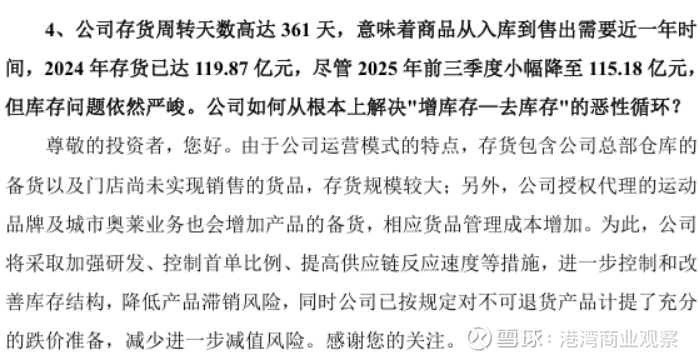 在12月8日的投资者交流活动上,有投资者提出:“财报显示公司存货周转天数361天,但未详细说明存货结构、周转效率改善措施及具体时间表。作为投资者,我们如何能更清晰地评估公司库存管理的真实进展?”