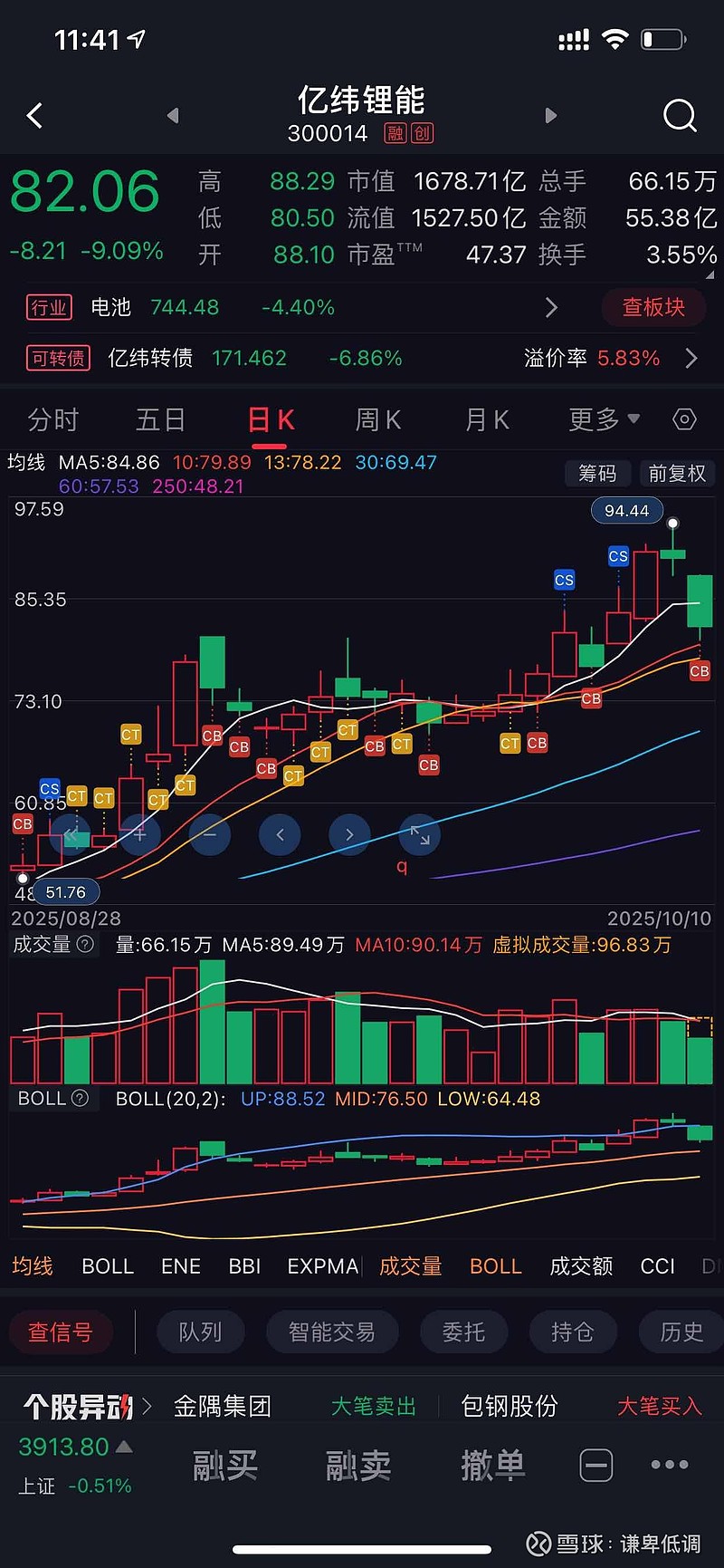 买回前几天卖飞的那部分亿纬。锂电,储能固态就是这两个月,后面三个月,以及明年甚至后面几年的最大主线。A股要继续上涨,锂电是带头先锋之一,否则群龙无首。锂电是高科技高端制造业里面估值最低,且超高增速。