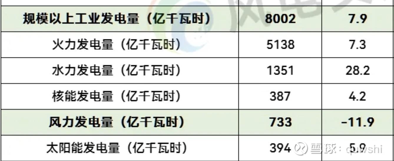从上图可见2024年10月,全国发电量相对于2023年10月同比只增长2.1%,2024年10月风力发电800亿度