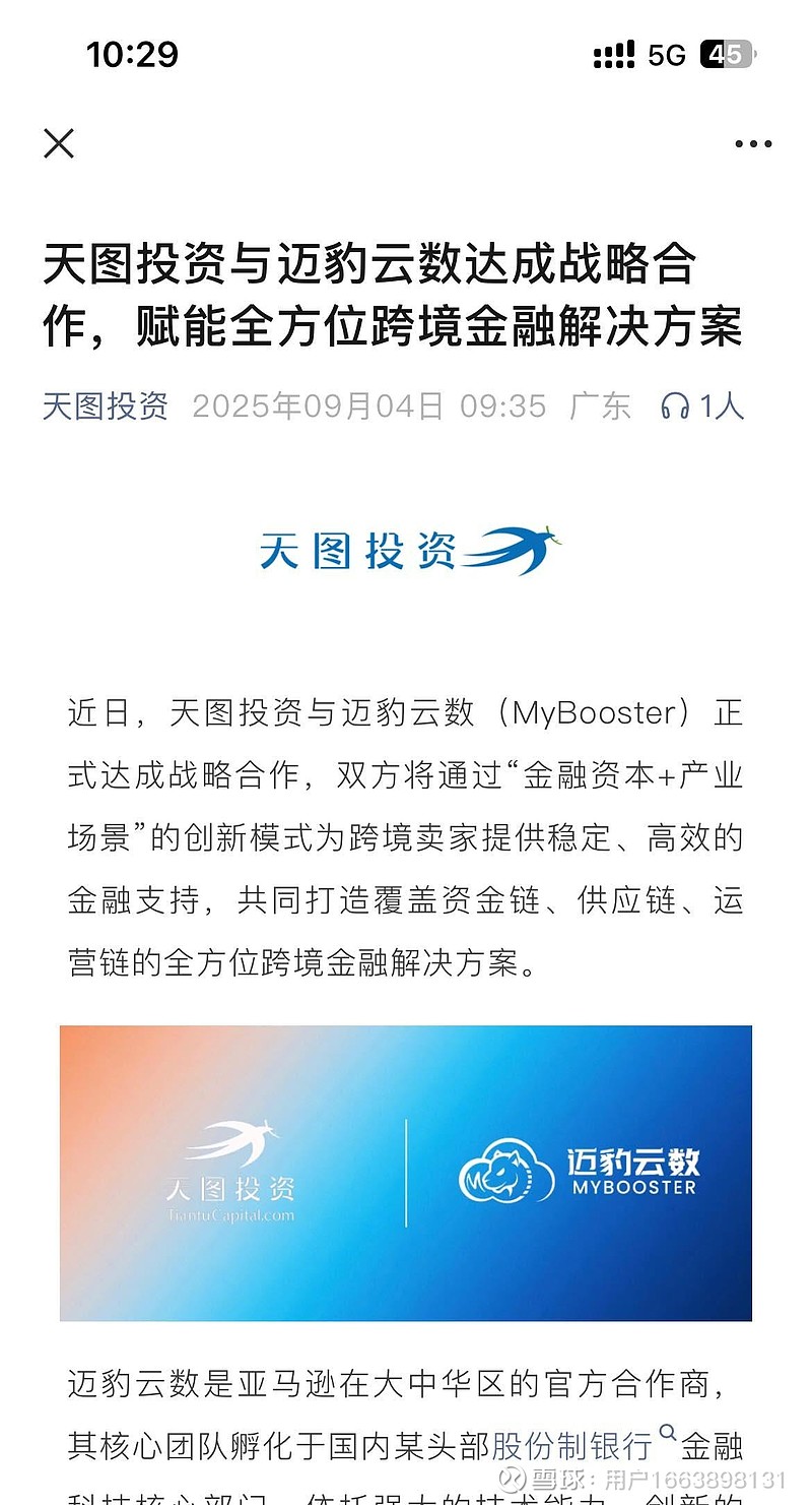 $天图投资(01973)$ $天图投资(NQ833979)$ 天图投资与迈豹云数达成战略合作,赋能全方位跨境金融解决方案,助力跨境电商发展!天图投资管理合伙人邹云丽表示:“跨境电商是中国品牌走向全球市场的重要纽带,我们看好中国跨境电商全产业链服务的发展机遇,迈豹云数创新的商业模式和多元化的服务能力,使其成为我们布局这一领域的最佳合作伙伴。我们期待通过产融协同,共同推动中国跨境电商产业升级,助力更多中国品牌走向世界。”
