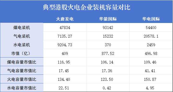华电在气电上有巨量装机,大唐在水电上有较大优势。