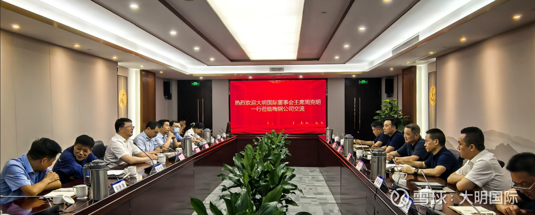 8月6日,大明国际董事会主席周克明、总裁梁宗仁、总裁助理张俊、大明集团碳钢事业部总经理蒋随强、浙江大明总经理助理刘冲、靖江大明碳钢销售部长郦晓亮、集团碳钢供应部副部长石峰一行前往南京拜访了宝钢股份梅山钢铁公司。