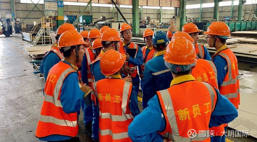 生产见习是2025届校招人才培养计划中的重要环节。7月底,2025届校招学员分为两组,同步在江苏大明与靖江大明两地,围绕不锈钢、碳钢及深加工设备与工艺开展现场学习与实践。