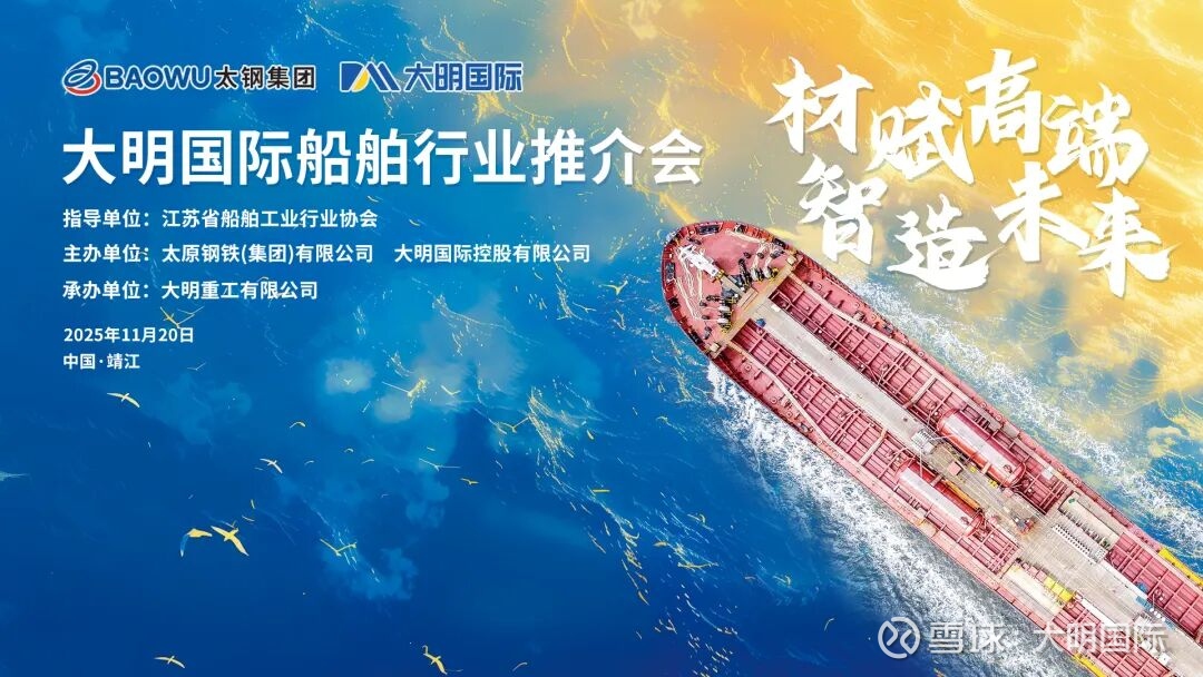 为聚共识、谋共赢、促发展,由江苏省船舶工业行业协会指导、太钢&大明联合主办的“材赋高端·智造未来"一2025大明国际船舶行业推介会将于11月20日在靖江金悦国际酒店(靖江市阳光大道11号)召开。