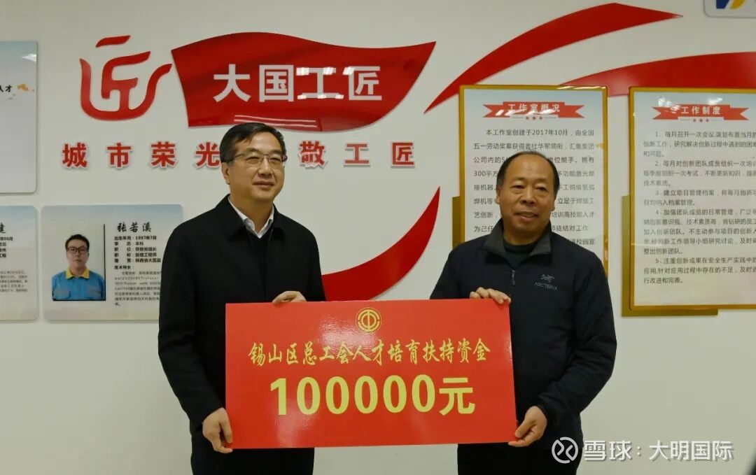 锡山区总工会为大明颁发人才培育扶持资金