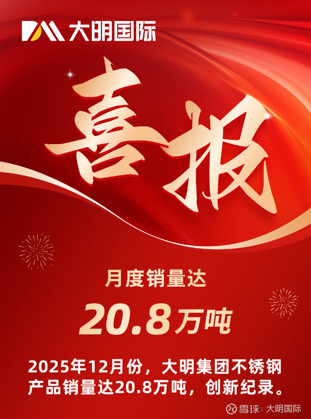 创新高!大明集团2025年12月份不锈钢产品销量达20.8万吨