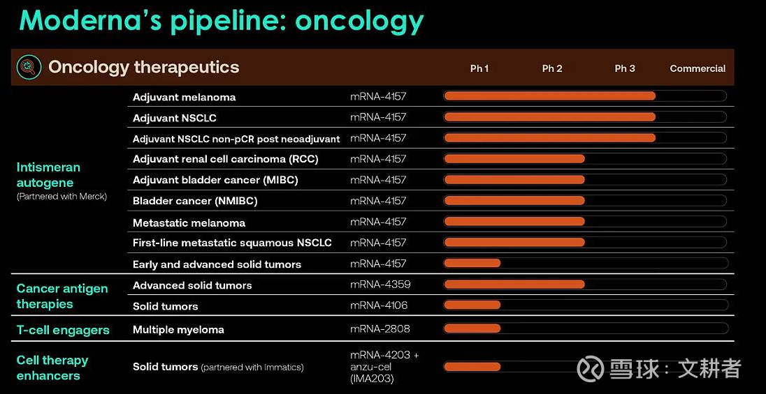mRNA几乎被描述成可以“模块化拼装”的通用平台,可以平移到流感、RSV、CMV乃至肿瘤个体化疫苗。所以,mMNA成功验证的技术平台,将具备向其他癌症扩展的无限可能。目前,公司与默沙东已将视线瞄准更广阔的战场,双方正在非小细胞肺癌、膀胱癌、肾细胞癌等八项II期和III期临床试验中推进合作。