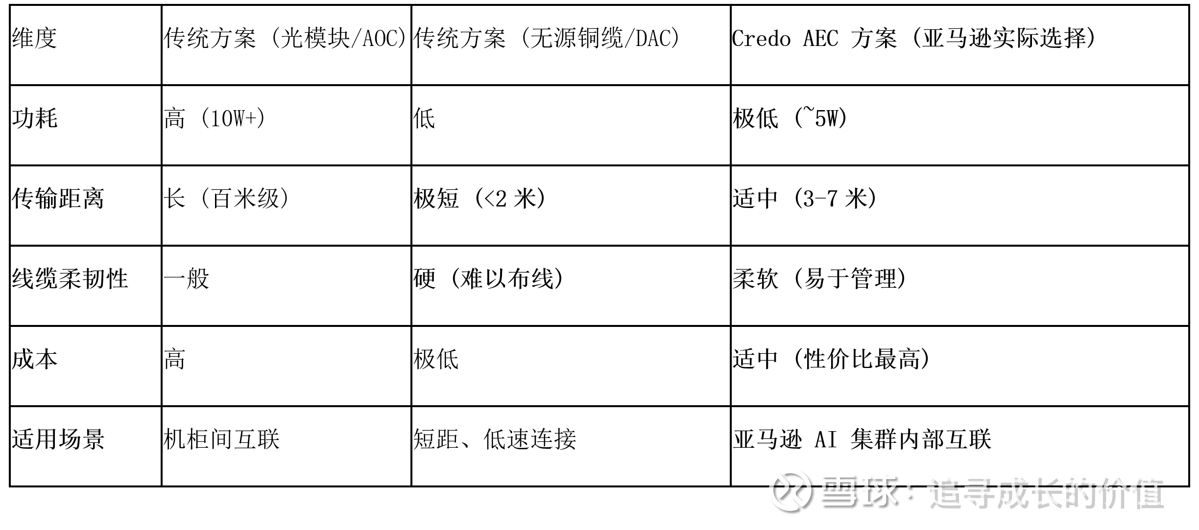 Credo 的 AEC 方案相比亚马逊原本可能采用的“传统方案”(如光模块或无源铜缆),为亚马逊带来了什么优势?