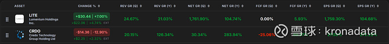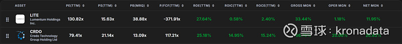 光电两巨头数据对比,现在是所谓光进铜退,一对比会发现LITE的毛利率那么低,铜在很多方面是光无法代替的,相信CRDO这个季度的业绩也会很好。网页链接{$Credo Technology(CRDO)}$谷歌C(GOOG)$ 网页链接{$Lumentum控股(LITE)$ }