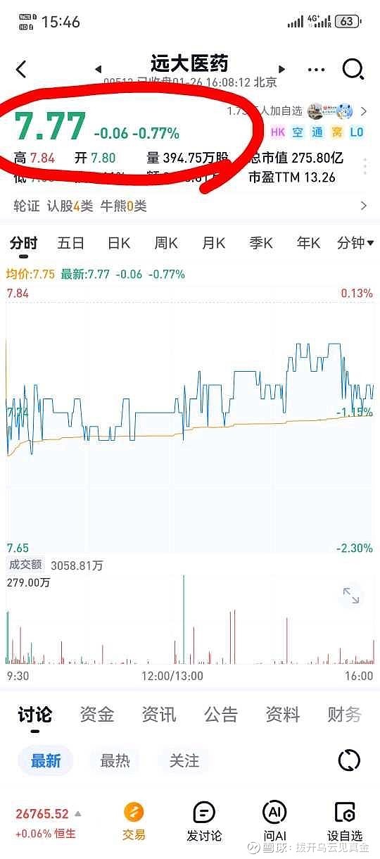 收盘价7.77 差点跌0.7功夫不到位,-0.6