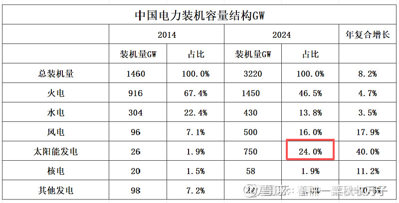 估计大多数读者读到这里都会有疑惑,2024年太阳能发电装机量占比已经达到了24%,但是当年太阳能发电量占比却只有6.8%,明显的不匹配。估计很多用心的读者都会因此对太阳能发电产生怀疑。甚至因为这个数据给他的脑海中种下光伏就是垃圾电,效率低下等等不好的种子。所以我觉得很有必要专门为这个细节做下解释。