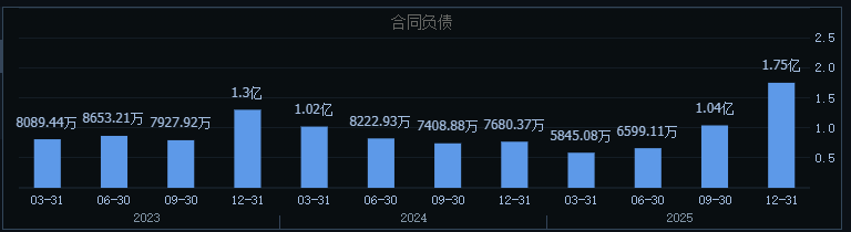 合同负债指企业已收或应收客户对价而应向客户转让商品的义务。通俗地说,就是“客户已经付了钱(或到了付款节点),但货还没交付或没验收,因此不能确认为收入”的钱,如果万东医疗中标了大量集采订单,且医院方按合同支付了预付款,但这批设备还在生产、运输或安装调试验收阶段(医疗设备验收周期长),这笔钱就会趴在“合同负债”里。合同负债相比前面几个季度多了接近1个亿,按照10-30%的首付款或进度款,放大4倍,也接近4个亿收入未确认。