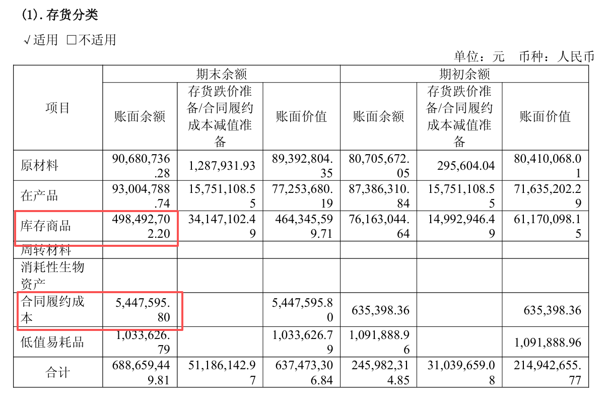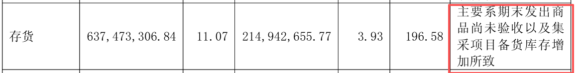 第二个科目就是存货了,万东可能集采中标了,但是很多设备由于确认进度周期变长,因此就是堆在存货里了,一般在存货的发出商品里。下图是年报中关于存货的描述,期末相比期初增加了2倍,而且说明了大部分都是尚未验收以及备货库存。