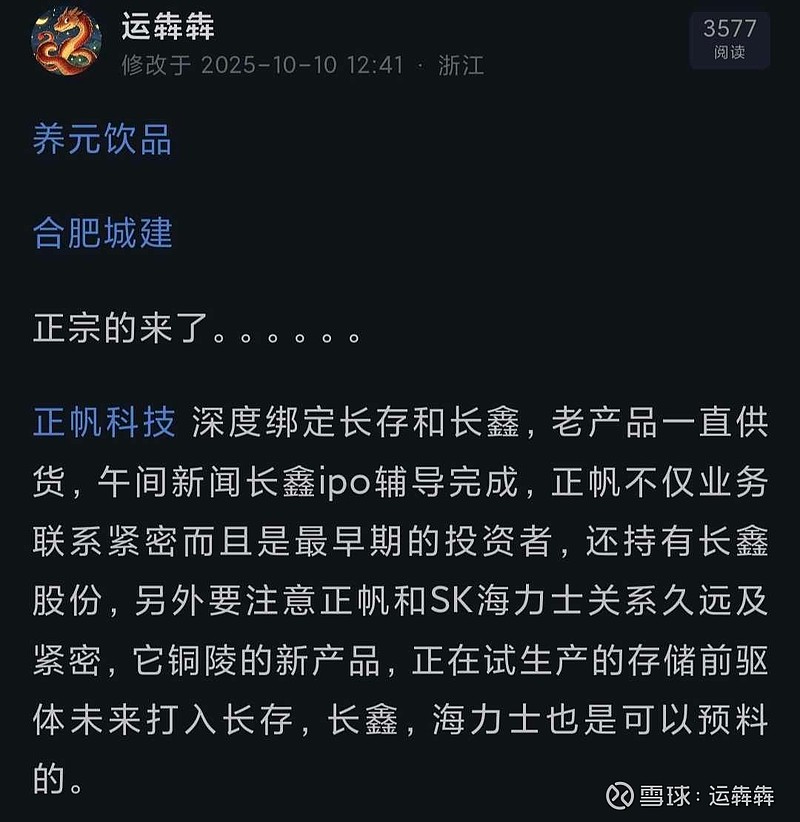 董秘:尊敬的投资人,正帆对长鑫有早期投资。正帆是长鑫的长期合作伙伴和重要供应商,跟长鑫合肥、北京、上海厂均有合作。