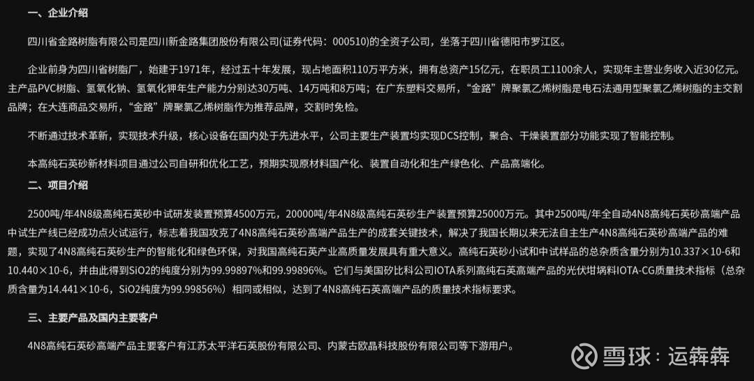 2500吨/年4N8级高纯石英砂中试线已完成,调好后20000吨/年扩产计划,保守全部按国产光伏级高纯石英砂6万一吨计算(半导体级要贵很多),扩产成功后年产值13.5亿。