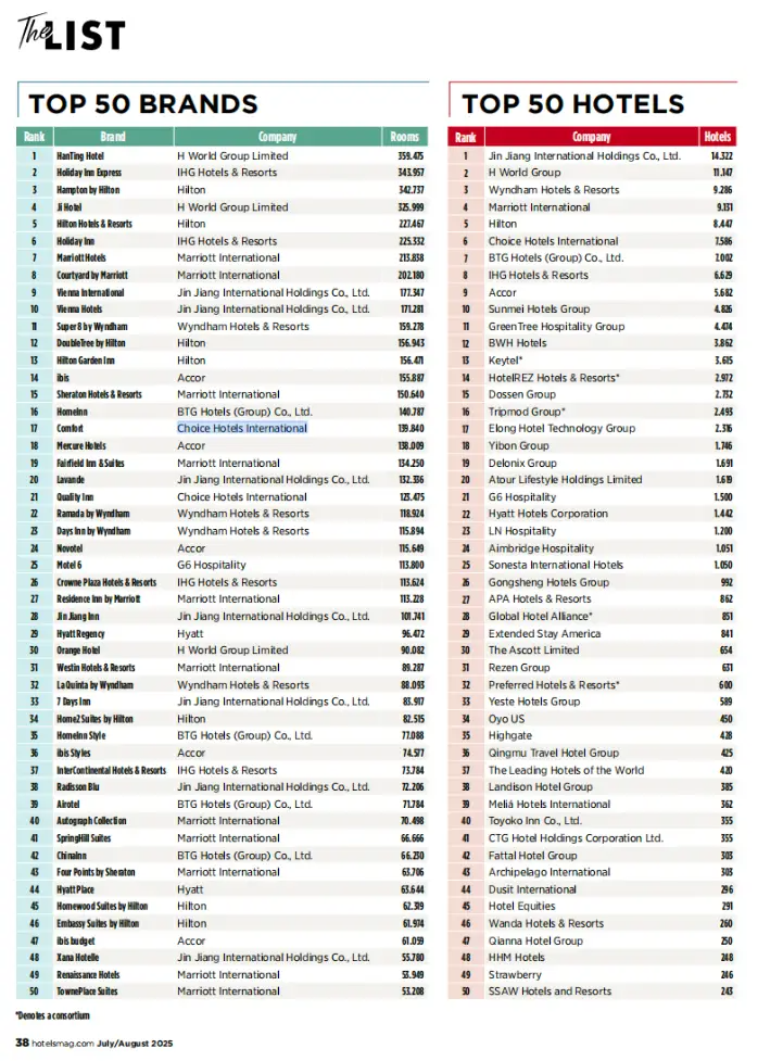 美国《HOTELS》杂志今年夏天发布了一份全球酒店集团百强榜,华住旗下的酒店品牌,占据了Top 4里的两个席位,其中汉庭更是凭借接近36万间客房位列榜首。
