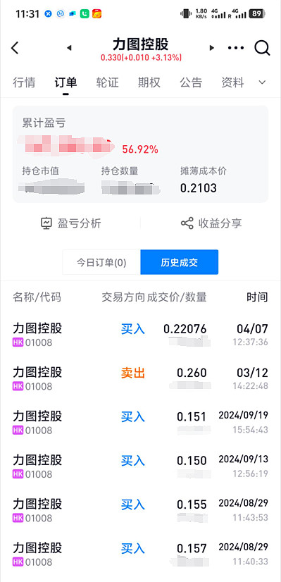 在这里我不是想说自己成功, 力图是我非常失败的一个投资。快5年了,5年啊!才有50%左右的收益。