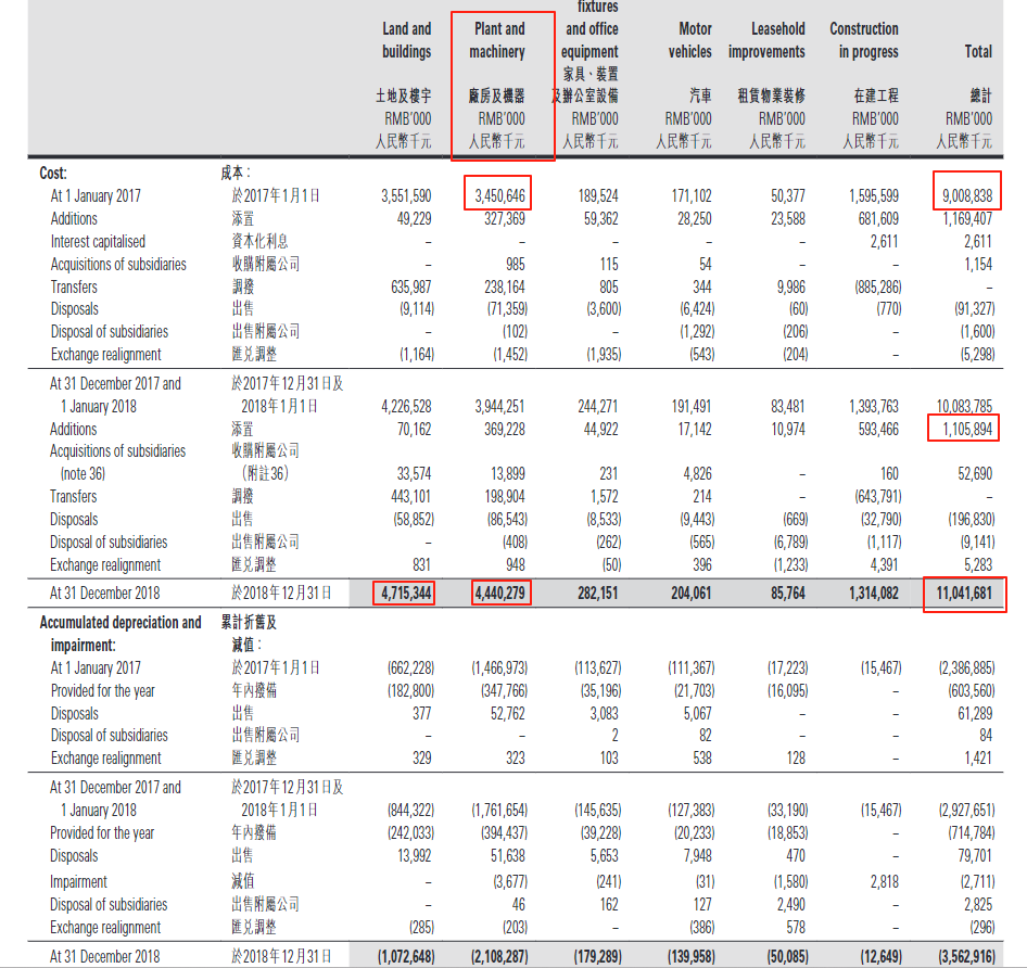 在设备这一块投入到18年为止一共是44亿 厂房的投入是47亿