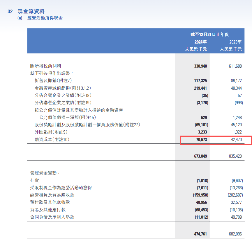 23年半年报6个月的融资收入是30792,而现金流量表完全匹配时30792.