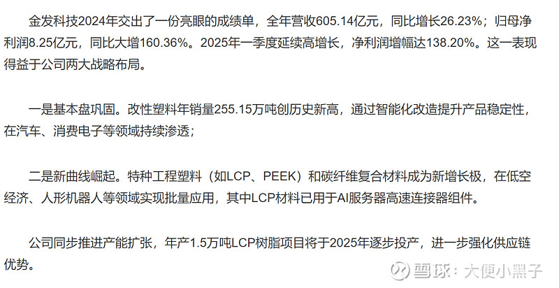 $金发科技(SH600143)$ 熊市底部让我们基本面分析,也就罢了,牛市里主题概念挖掘,韭菜难道还要我们来?AI工具都那么多了,天天无脑宇树宇树, 宇你个大爷。没LCP,没脑机接口?PEEK 院士都是金发的还在那里无脑东北垃圾材料企业。自己翻翻特种工程塑料板块业务增速多少不行吗。谁是T链绑定最深的材料供应商心里没一点B数吗?
