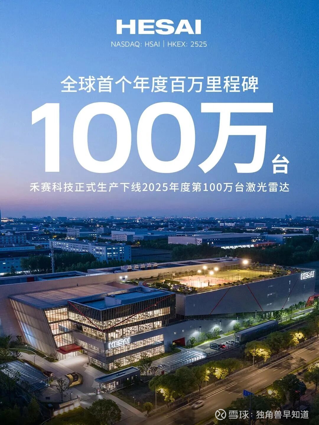 禾赛科技3日宣布,2025年度第100万台激光雷达已于9月底正式生产下线。禾赛成为全球首个年产量突破百万台的激光雷达企业。