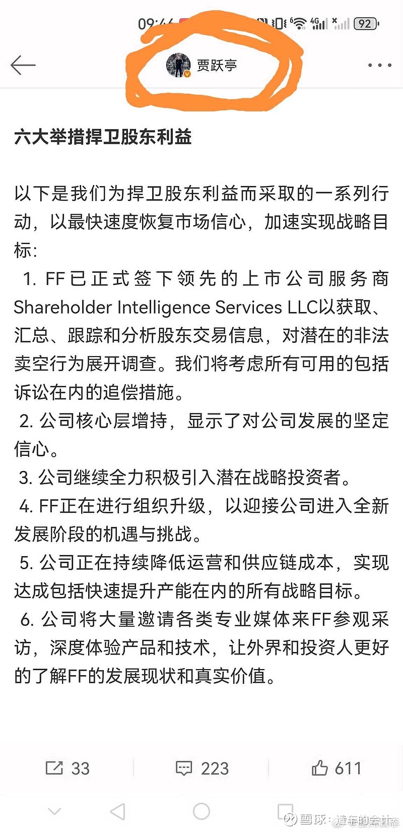 六大举措捍卫股东利益,以最快速度恢复市场信心。