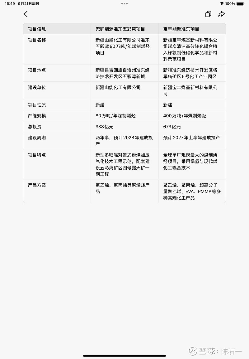7. 市场前景:两大项目均面临良好的市场前景,但宝丰能源作为行业龙头企业,在规模、技术、成本和品牌等方面具有明显优势,市场竞争力更强。