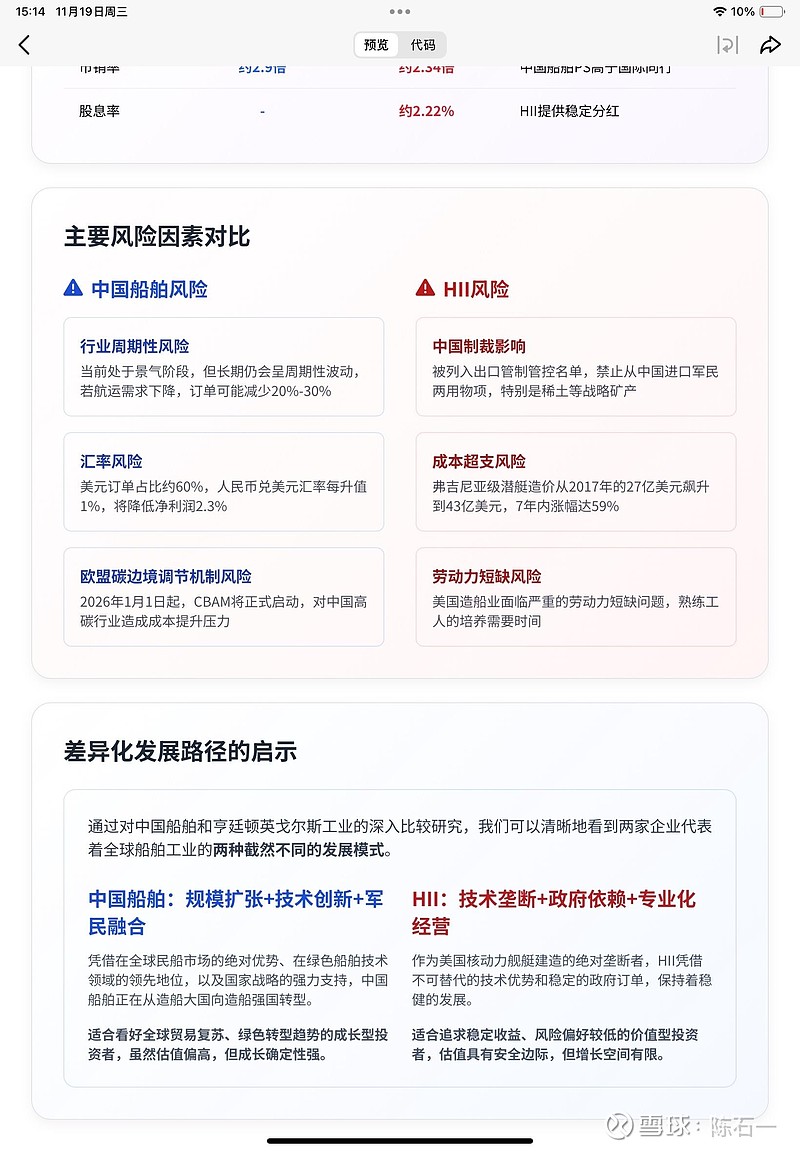 通过对中国船舶和亨廷顿英戈尔斯工业的深入比较研究,我们可以清晰地看到两家企业代表着全球船舶工业的两种截然不同的发展模式。