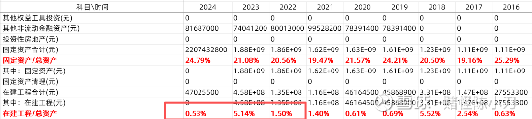 我们从表中可以看出,公司的在建工程在2023年大幅飙升,但在2024年年底基本全部转固定资产。