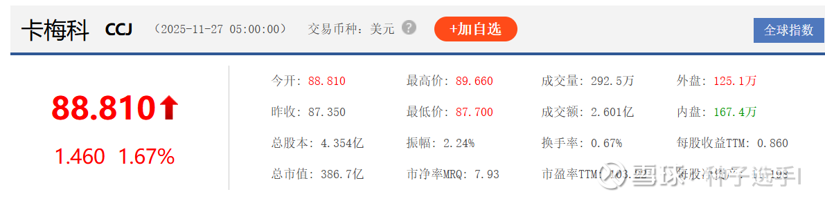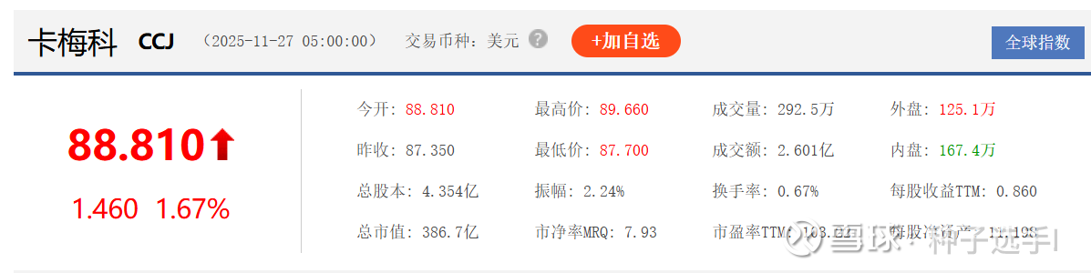 卡梅科Cameco:是一家总部位于加拿大萨斯卡通的铀交易上市公司,中文名为卡梅科公司 。