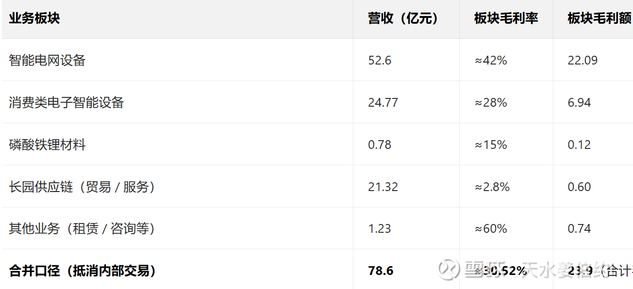 下面我将分智能电网设备(长园深瑞、长园电力、长园共创等)消费类电子智能设备(珠海运泰利、欧普菲等)磷酸铁锂材料(金锂科技)三个板块进行分析,其中长园供应链为集团内部提供采购、库存、物流、结算等,均为关联交易,所以营收没有并表,该板块不做分析。