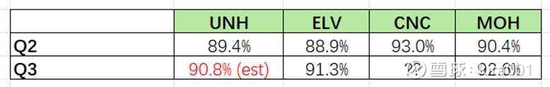 5) 最后就是最关键的MLR (medical loss ratio),从elv和moh得知这俩都同比Q2增长,所以可以预计unh和cnc也是一样的情况,unh目前的consensus是90.8%, 我觉得如果参考elv, unh很可能会miss,算是其中的隐患,cnc估计也会提高