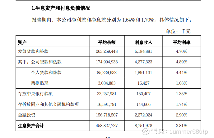 另一方面是节流,可以看到西安银行在存款方面大量吸收了对公的活期存款在存款中的占比(活期存款利息显著低于定期),从而显著优化了存款结构,降低了付给存款的利息。进而带动了整体生息资产的平均利率从去年末的2.59%降到2.17%。仅这一项就少付了5亿的利息支出