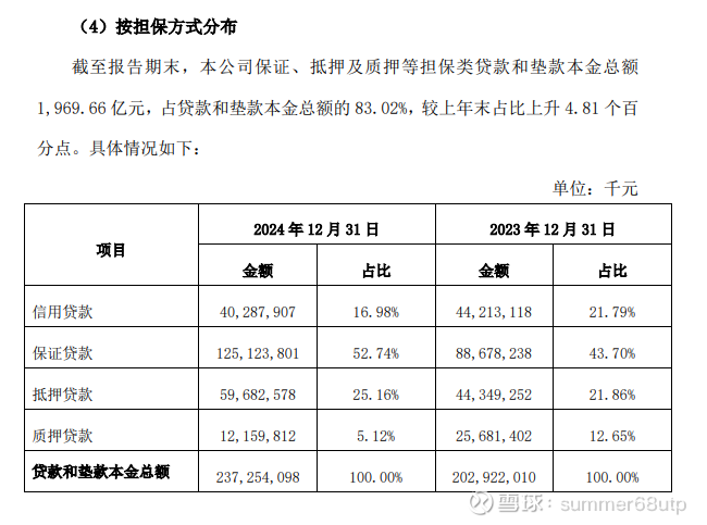 从半年报里贷款担保方式的占比可以看出,显著降低了高风险的信用贷款,增加了更多保证贷款和抵押贷款。这个贷款结构相对来说是变得更加安全的。