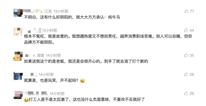 但也有网友站在了周大福一边,认为这只是在开玩笑,评论称“打工人是不是太应激了”。