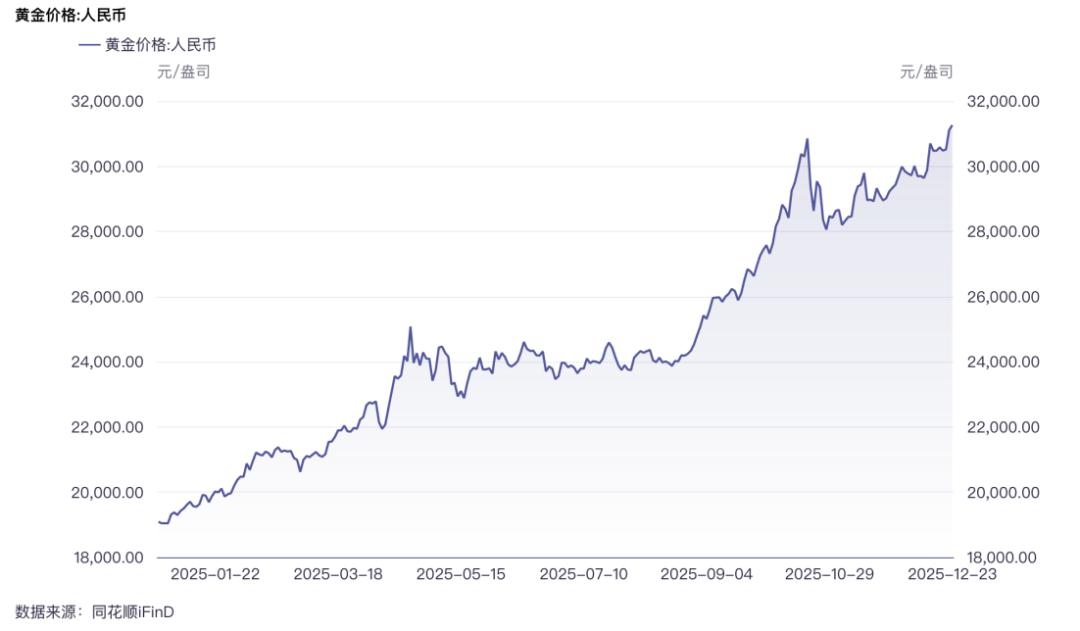 这一年,黄金价格疯涨。据同花顺iFinD数据,黄金价格从年初的约2万元/盎司一路飙升至如今的超3万元/盎司。