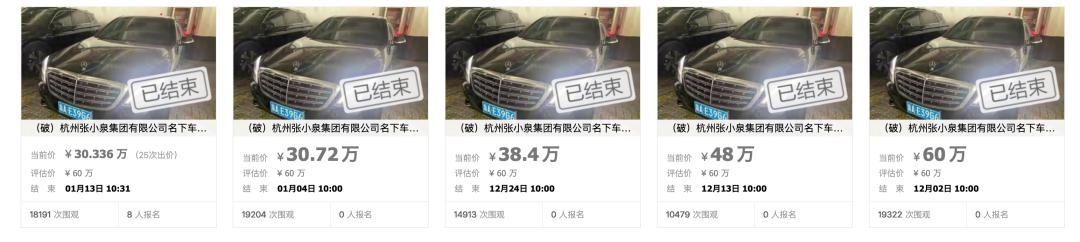 百年老字号张小泉控股股东名下的豪车迈巴赫S400,在历经5次拍卖后最终在1月13日以约30万元的价格被拍出。