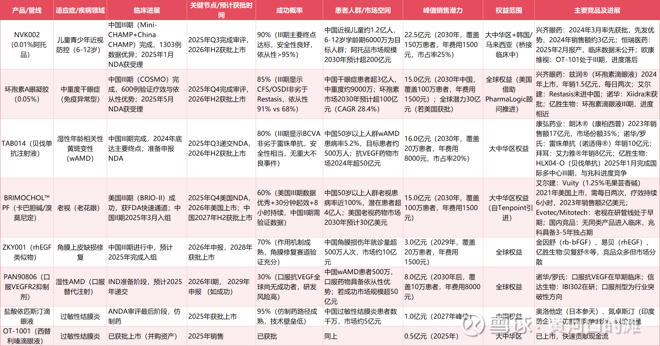 1、NVK002(0.01%阿托品)已完成1303例III期临床,2025年1月报产