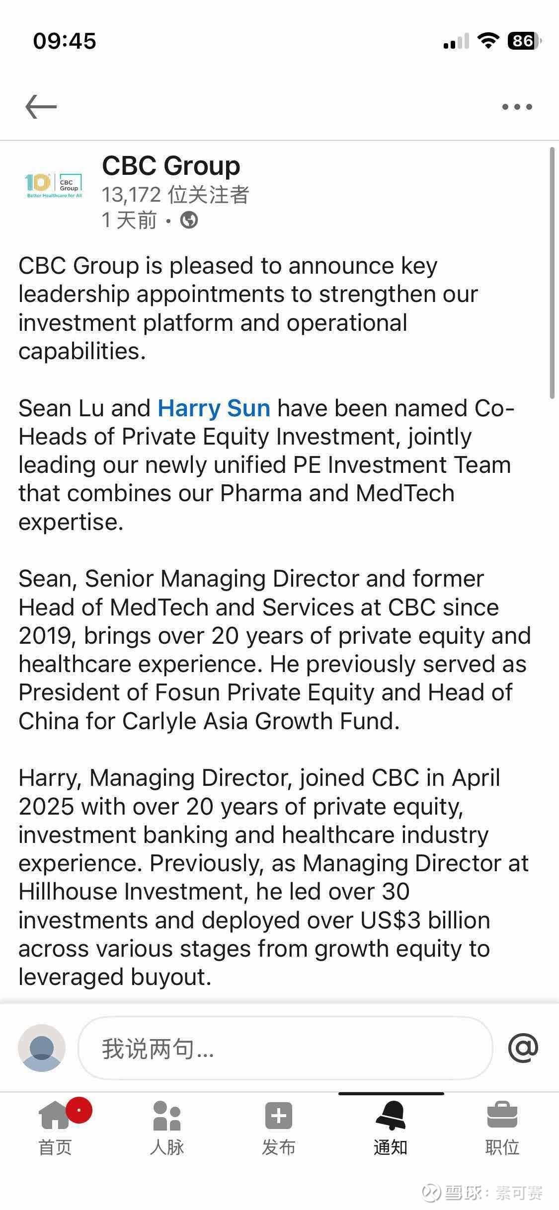 #CBCGroup #Leadership #HealthcareInvestment #PrivateEquity #MedTech #Pharma #OneCBC查看图片